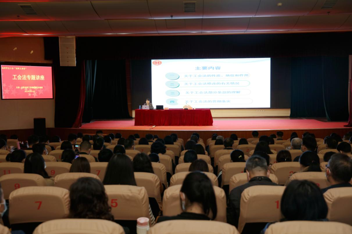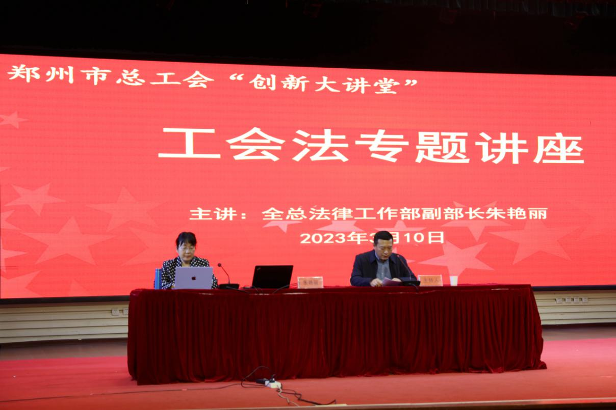 为深入学习贯彻新修改的《工会法》,扎实推进工会工作法治化建设,切实提高全市工会干部学法守法用法的能力和水平,3月10日上午,郑州市总工会开展“创新大讲堂”工会法专题讲座。此次讲座,有幸邀请到全总法律工作部副部长朱艳丽进行授课,朱艳丽长期从事工会法律工作,对工会法律有着深入的研究,是中国劳动学会劳动人事争议处理专业委员会副会长,全总公职律师。