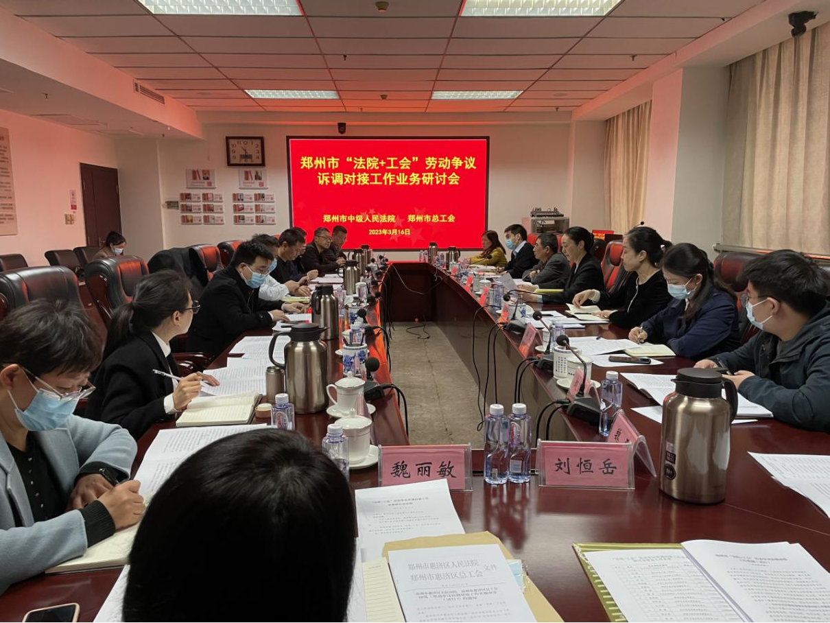 为深入贯彻党的二十大精神和习近平总书记“坚持和发展新时代‘枫桥经验’,及时把矛盾纠纷化解在基层、化解在萌芽状态”的重要指示精神,扎实推进“法院+工会”劳动争议诉调对接工作深入开展,3月16日上午,郑州市“法院+工会”劳动争议诉调对接工作业务研讨会在郑州市总工会十二楼会议室举行。市总党组书记、常务副主席王玉红,市中院立案一庭庭长任璐,市总工会法律工作部部长田波,部分县(市)区法院、工会业务人员等参会。