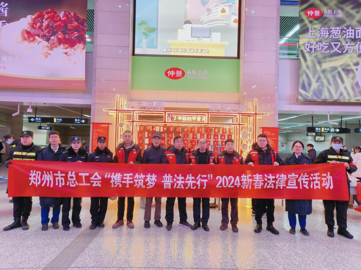 春节将至,为更好地营造新春法治氛围,不断推动“八五普法”和职工法治素养提升活动,丰富广大职工群众的法治文化生活,2月4日下午,郑州市总工会走进紫荆山地铁站,开展了“携手筑梦 普法先行”2024年新春法律宣传活动,把新春祝福送到千家万户,把法治理念送进职工群众心中。