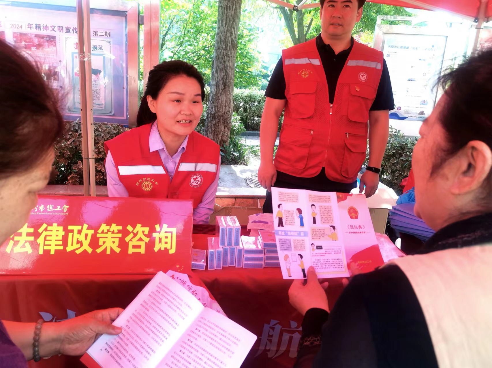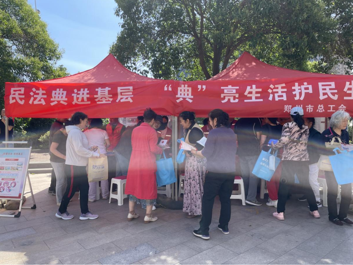 2024年5月是第四个“民法典宣传月”。为不断满足人民群众日益多元化的司法需求,让民法典走到群众身边走进群众心里,5月15日上午,市总工会法律工作部、市总工会驻郑东新区蹲点组联合祭城路街道办事处在黄河南路社区开展“民法典宣传月”主题宣传活动。
