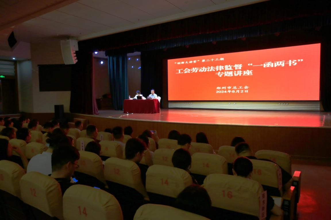 为深入贯彻落实全总、省总工会推行劳动法律监督“一函两书”工作部署,有效预防和化解劳动领域矛盾纠纷,进一步提升我市工会劳动法律监督“一函两书”工作质效,8月2日上午,郑州市总工会举办工会劳动法律监督“一函两书”专题讲座,邀请省总工会法律和社会工作部部长陈梦蕾作专题辅导。市总领导、机关产业全体人员,市职工服务中心全体人员,各开发区、区县(市)总工会和市总基层基层工会主席、工会干部、劳动法律监督员等共300余人参加此次讲座。