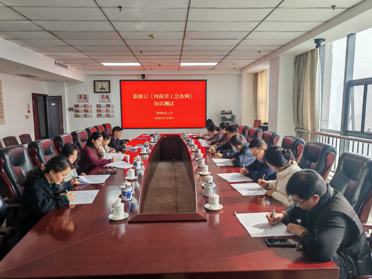 新修订的《河南省工会条例》于2024年9月28日由河南省第十四届人民代表大会常务委员会第十一次会议审议通过,并将于2025年1月1日起正式施行,条例围绕工会组织建设、维权服务手段及法律责任等多个方面进行了全面修改和细化,为各级工会依法履行职能、维护职工合法权益提供了坚实的法治保障。市总工会广大干部职工积极参与、认真答题,展现出了良好的学习态度和扎实的工会业务基础。