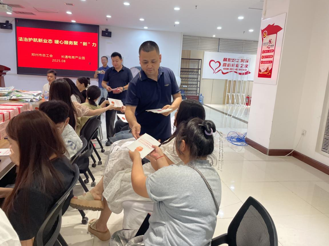 为进一步加强新业态新就业群体权益保障,8月12日,市总工会普法志愿者前往长通电商园,开展了一场“法治护航新业态 暖心服务聚‘新’力”的主题宣传活动,吸引了园区众多新就业形态劳动者积极参与。