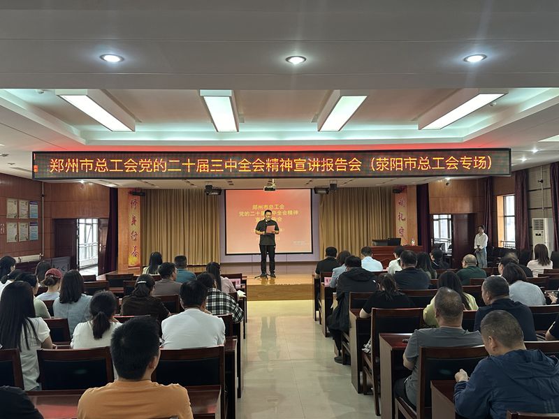 为深入学习贯彻党的二十届三中全会精神,引导全市基层工会和广大职工把思想和行动统一到全会精神上来。9月24日,由郑州市总工会主办,荥阳市总工会承办的学习贯彻党的二十届三中全会精神宣讲报告会在荥阳市总工会会议室圆满举行,来自全市各基层工会的150名职工参加活动。