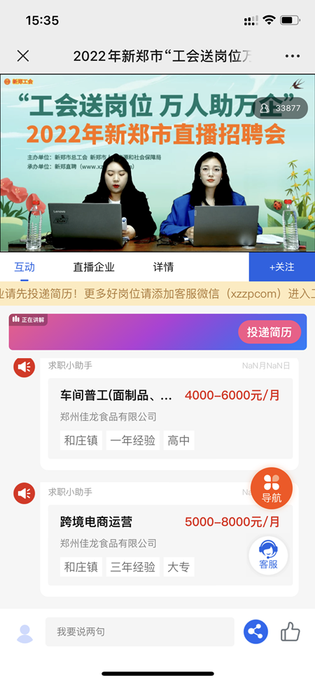 为进一步做好就业创业服务,满足企业用工需求,切实解决疫情期间企业招工难、求职者就业难的问题。4月28日下午,新郑市总工会联合市人力资源和社会保障局开展“工会送岗位 万人助万企”线上直播招聘活动。
