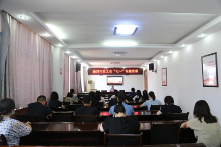 为庆祝中国共产党成立101周年,根据党史学习教育安排,7月6日下午,新郑市总工会党组副书记、常务副主席王芳芳围绕“坚定理想信念 奋发实干作为”主题讲党课,市总工会全体党员干部职工参加。