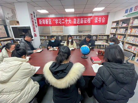 1月13日,新郑市新区管委会机关工会在阅览室开展“学习二十大,奋进新征程”读书会,20余名干部职工参加。大家纷纷朗读红色书籍,交流心得体会,并就学习贯彻党的二十大精神,立足自身工作岗位,说想法、谈感受、话规划,现场气氛十分活跃。