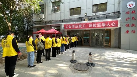 2023年河南省总工会“五大行动”“十件实事”单位免费体检活动正式启动。近日,河南家可美家政服务有限公司工会在新郑市总工会的协调安排下,组织100余名职工到河南省职工医院参加免费体检。在医护人员的引导下,大家分流错峰体检,进行抽血化验、B超检查、血压测量等项目。职工们纷纷表示,感谢工会组织的关心和呵护,将以更加饱满的热情投入到工作中去。