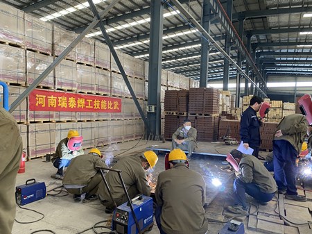 5月28日,河南瑞泰举行焊工技能比武,共30名职工同台竞技。此次比赛分为理论测试和实践操作两个部分,其中理论知识考核占40%,技能操作考核占60%。在理论测试中,大家手机扫码后进行线上快速答题。电焊比赛中,大家手持焊枪,切磋技艺,双手游刃毫厘之间,显示出精湛的技艺和高超的焊接技能。经过激烈的比拼,张庭瑞获得一等奖,李明举等3人获得二等奖,刘瑞东等5人获得三等奖。