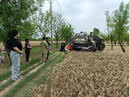 5月下旬,河南省出现大范围持续阴雨天气,连续的阴雨天气,导致麦田积水,小麦点片倒伏、发霉,籽粒萌动和麦穗发芽现象。新郑市总工会分包的贫困村孟庄镇曹庄村也遭受了此次“烂场雨”的灾情,因曹庄村耕地种有枣树,导致大型割麦机进不去,小型割麦机收割困难,严重影响了小麦正常成熟收获。6月2日,新郑市总工会驻曹庄村工作队、曹庄村村“两委”干部利用晴好天气,与村民一起对成熟小麦进行抢收、抢晒。截至目前,曹庄村800多亩小麦已完成抢收700余亩,预计6月3日前后麦收将基本结束。