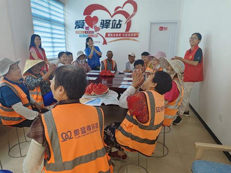 6月19日上午,新建路街道西街社区工会爱心驿站开展“爱心驿站送清凉·夏季防暑降降温”主题活动。活动中,社区工会志愿者们为附近30余名环卫工人送上清凉解暑大西瓜,吃西瓜的同时给大家发放夏季防暑降温小贴士,并讲解了防暑降温小常识以及中暑急救等小知识,又运用游戏的方式进行互动问答,加深大家印象。活动最后,志愿者又再次叮嘱大家要注意防暑降温,多喝水,注意休息,合理安排工作与休息时间,做好个人防护。