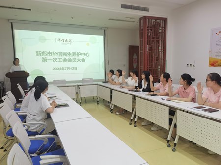 7月12日,新郑市华信民生养护中心工会召开第一届会员大会第一次全体会议,25名职工参会。会议听取了《筹备工作报告》,审议通过了《大会选举办法》及监票人、计票人名单。经过严格的选举程序,以无记名投票的方式选举产生了新郑市华信民生养护中心工会第一届工会委员会和经费审查委员会,协商产生了第一届女工委员会。新当选的工会主席杜巧慧作了表态发言。