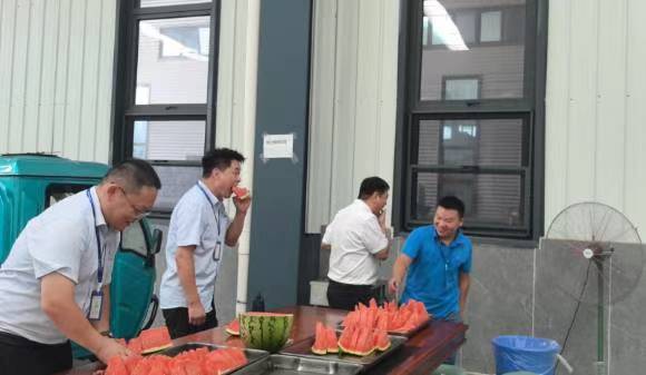 7月30日,郑州市人人利食品有限公司工会开展送清凉活动,大力宣传普及中暑急救等知识,为奋斗在一线的职工送上苏打水、西瓜等消暑物资,叮嘱职工多饮水注意防暑降温。此次“送清凉”活动共计发放苏打水960瓶,西瓜1000斤,惠及一线职工700余人。
