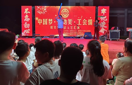 近日,辛店镇工会先后在新郑市果之恋食品有限公司、辛店镇北靳楼村开展“中国梦·劳动美·工会情”文化进基层活动,100余名职工群众观看。活动以歌曲联唱《劳动之歌》拉开序幕,诗朗诵《中国梦劳动美》、小品《工会的故事》、杂技《功夫熊猫》等节目精彩纷呈,台下观众应接不暇,掌声不断。