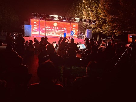 10月13日,新村镇工会联合会“中国梦.劳动美.工会情”送文艺进基层活动在辖区公主湖社区文化广场举行,200余名职工群众观看。歌舞《红色娘子军》、歌曲《母亲》、豫剧《倔公公 犟媳妇》选段、舞蹈《欢聚一堂》等精彩节目轮番上演,现场气氛热烈,掌声不断。