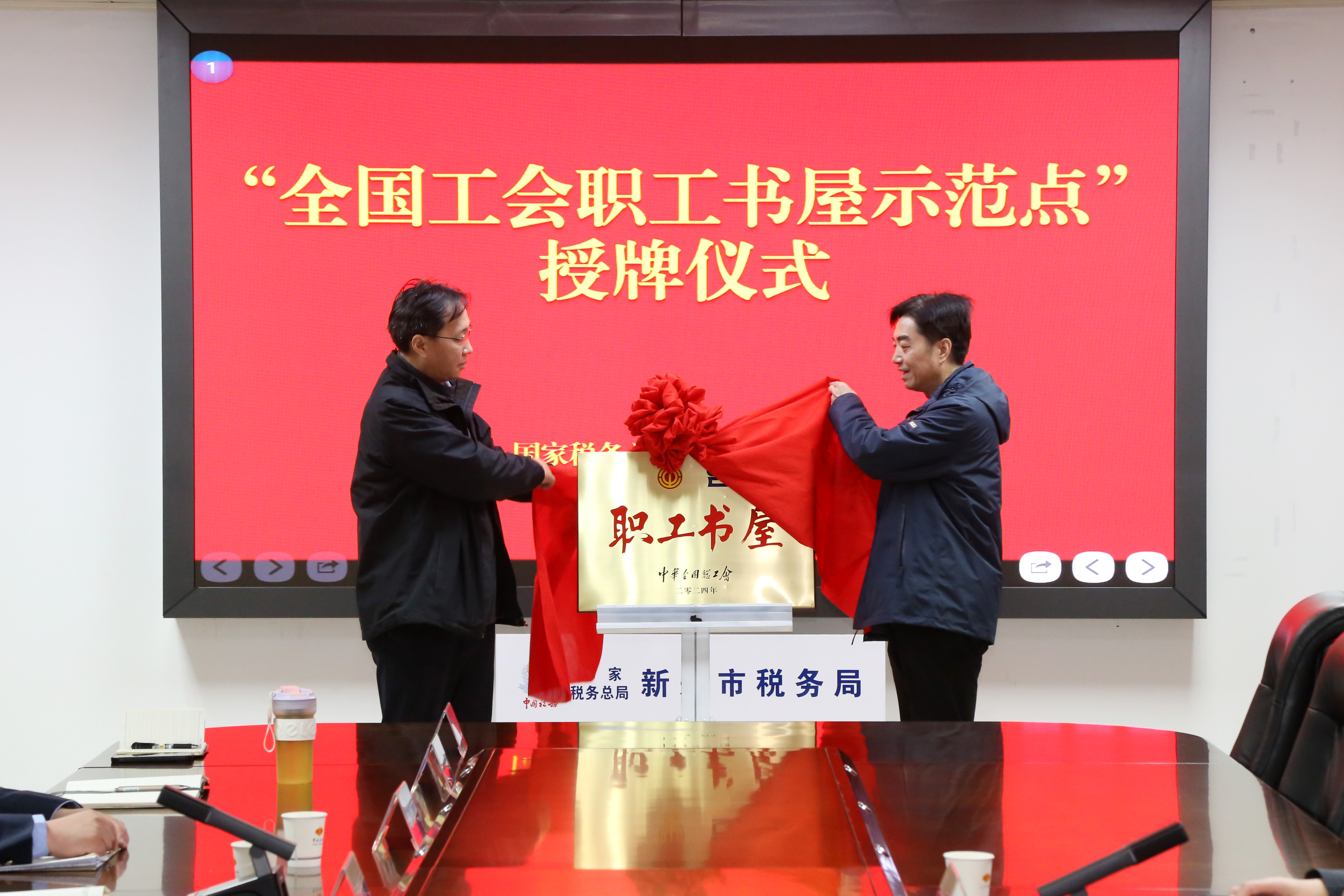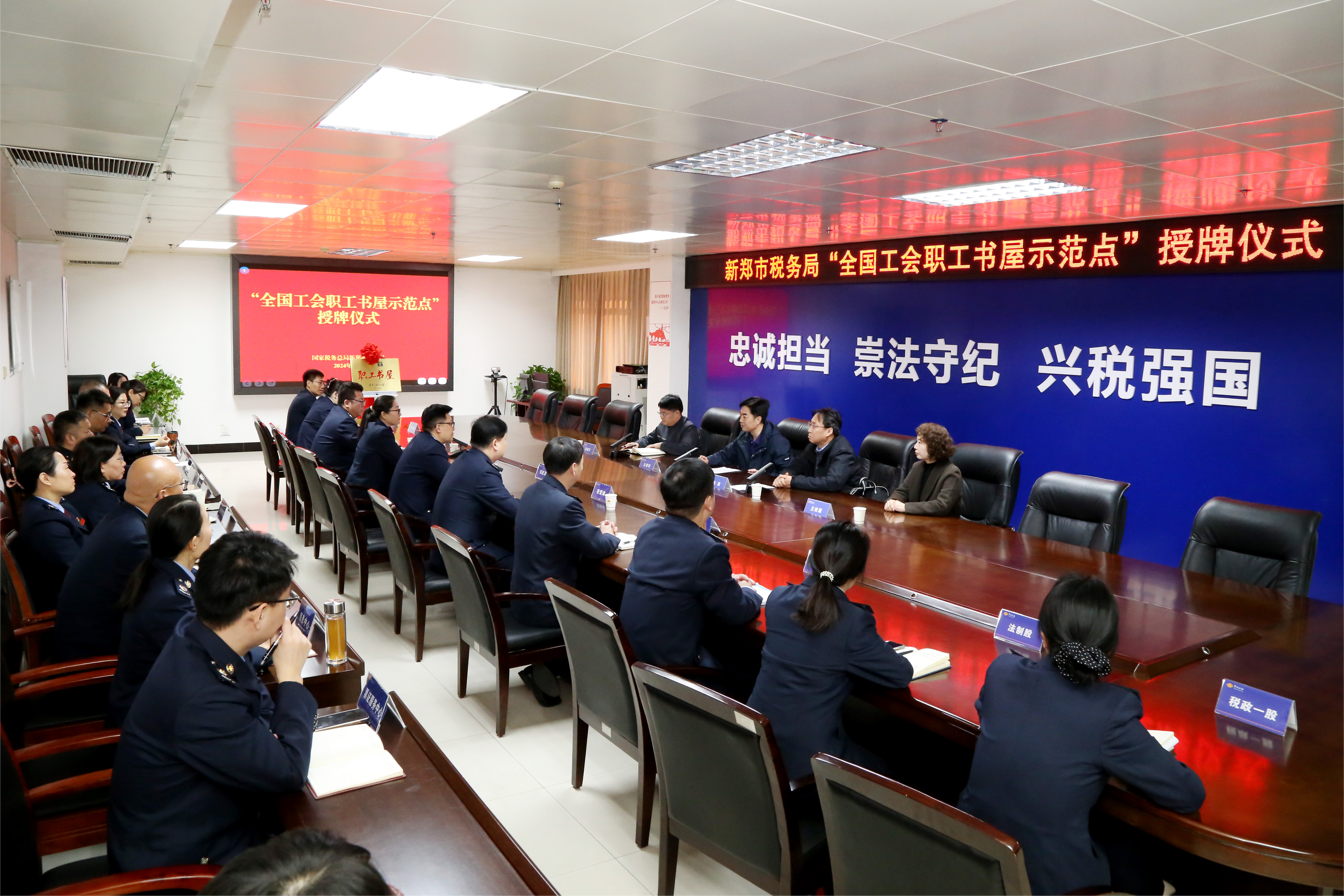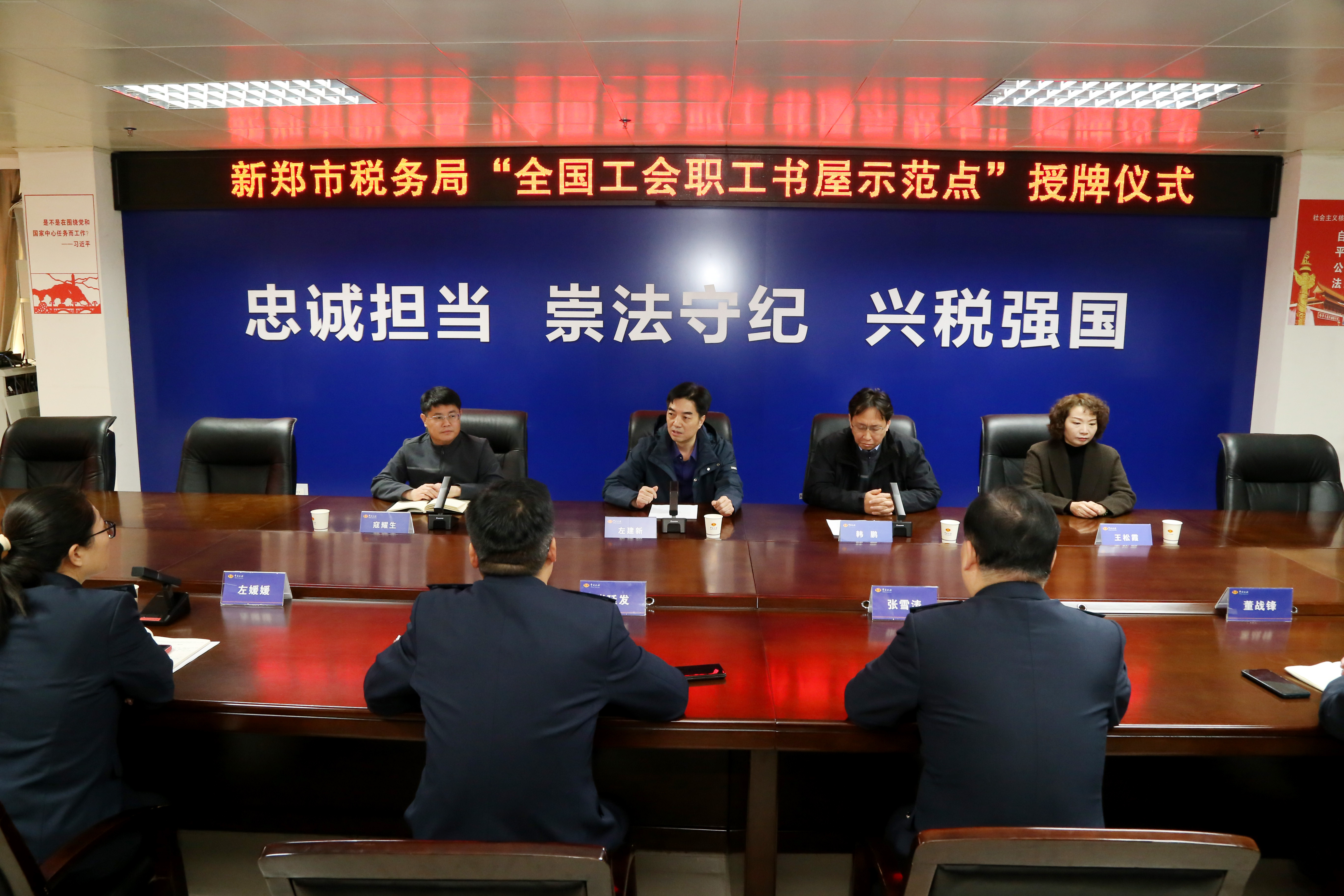 12月17日,新郑市税务局荣获“全国工会职工书屋示范点”称号授牌仪式在税务局六楼会议室隆重举行。新郑市人大常委会副主任、新郑市总工会主席左建新,郑州市税务局党委委员、副局长韩鹏等出席授牌仪式。