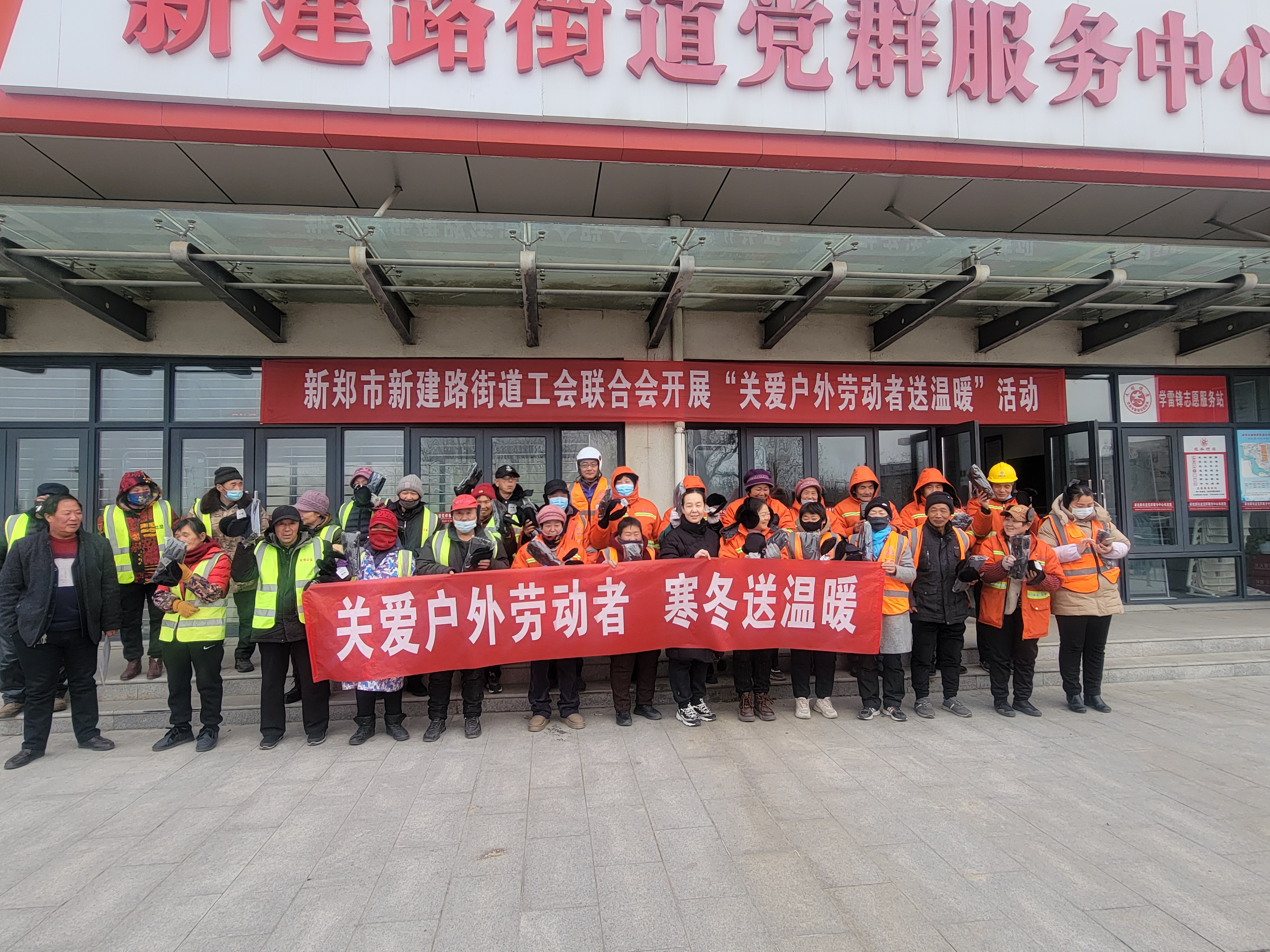 1月2日,新建路街道工会联合会爱心驿站开展冬日送温暖活动。此次活动为辖区170余名环卫工人和快递小哥送上手套和耳暖,让广大户外劳动者在辛苦工作期间体会到工会娘家人的温暖。