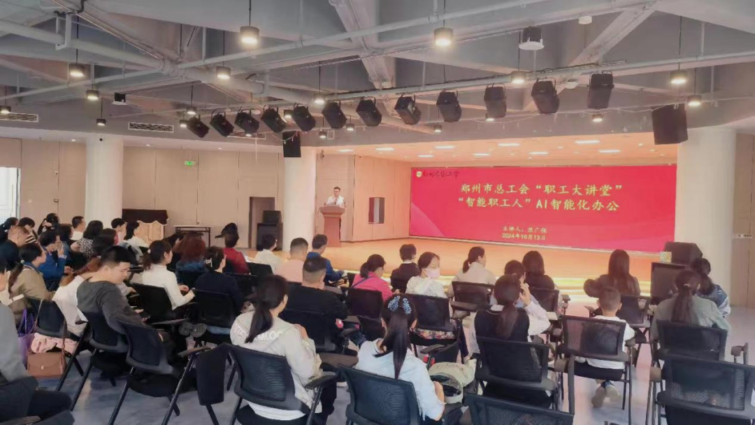 10月13日,郑州市总工会职工大讲堂迎来了一场别开生面的课程——“智能职工人”AI智能化办公技能培训,邀请职工共同探索AI技术在办公领域的广泛应用和实际操作。此次活动吸引了100多名职工积极报名参加。