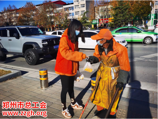 “我们早上起的早,有时随便吃点饭,有时来不及吃早饭就要到岗,天气越来越冷了,感谢工会送来了热粥和鸡蛋,特别温暖。”坚守在中兴路上的环卫工高兴地说。
