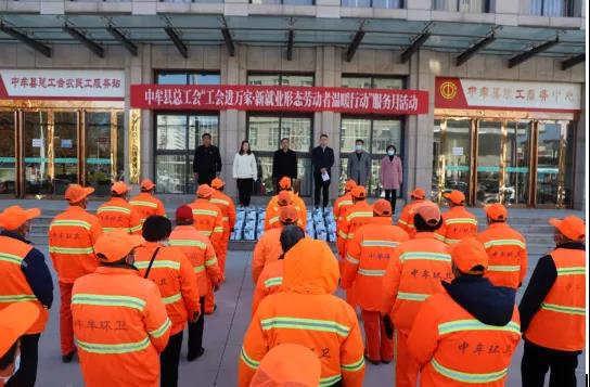 图一 职工之家农民工服务站为户外劳动者代表开展温暖服务活动