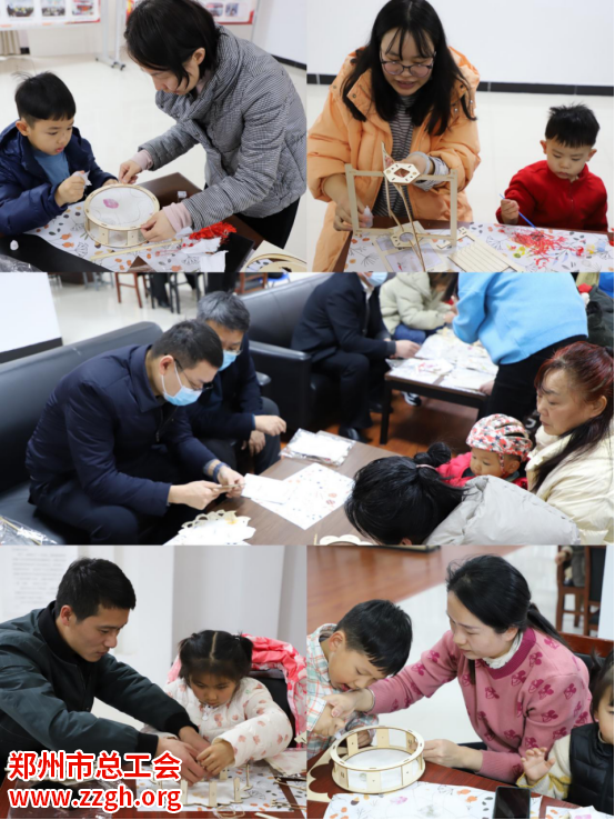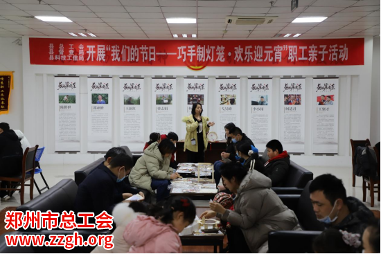 本次活动邀请郑州市职工大学资深手工课讲师李敏进行灯笼制作的现场教学。活动现场,李老师首先介绍灯笼的历史来源和灯笼的制作过程,并分发制作灯笼的手工材料,讲解制作方法,演示灯笼图画过程,之后在老师的指导和帮助下,职工和孩子们一步一步地动手操作起来,慢慢地搭建灯笼的框架,然后利用各种各样的材料制作出一盏盏或圆或方的元宵灯笼。当孩子们看到自己亲手制作的灯笼成型时,都乐在心头,喜在眉梢。