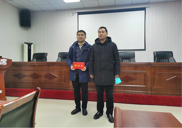 1月17日上午,县人大常委会副主任、县总工会主席卢志刚来到市五一劳动奖章获得者陶峰的工作单位,向他致以新春祝福,为他带去了慰问金、慰问品。卢志刚表示陶峰所在的中交一公局第七工程有限公司在“7.20”特大暴雨抗洪抢险、疫情爆发期间出力出资,贡献很大,同时希望他续发扬爱岗敬业、开拓创新的精神,发挥劳模精神,引领企业职工,在各自的岗位上再创佳绩,为中牟的发展作出新的更大贡献。