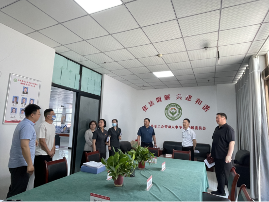 会后,陈常义一行调研工会劳动争议调解室建设运行情况,翻阅了工作台账,对工会调解工作方式方法和成效给与了赞同。下一步,县总工会将联合县法院拟定印发工作机制,组织调解员围绕调解业务流程、技巧、文书制作等内容开展学习和培训,持续深化与法院的沟通协调、有效对接工作。