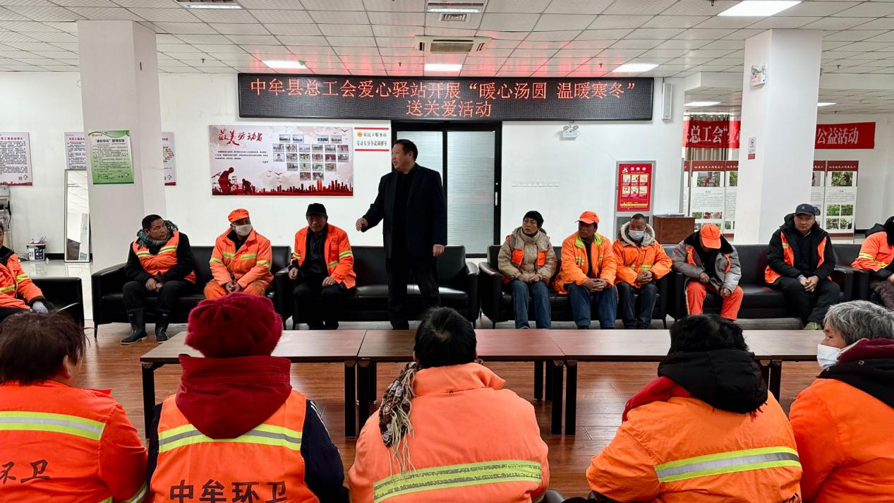 近期,我县受雨雪天气影响,气温骤降,湿冷侵袭,环卫工冒着凌冽的寒风仍需坚守在一线工作,为表达对户外劳动者们的关心与关爱,县总工会充分发挥爱心驿站作用,想职工所想、急职工所急,开展多种形式的送温暖活动。