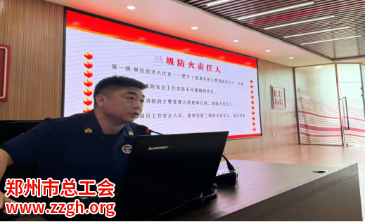 今年5月,迎来了第九个火灾警示宣传教育月。为提升广大职工群众消防安全素质和抵御灾害能力,中牟县总工会围绕“人人讲安全、个个会应急——着力提升全社会抗御火灾能力”的主题,于5月16日下午,走进万洪路区域发展中心(以下简称“中心”)在中心三楼会议室开展安全生产培训进企业活动。中心党委书记王伟立及副主任陈芳芳、中牟县总工会副主席吴政伟、万邦集团总经理马金平以及万邦市场内百余家商户参与了本次培训。