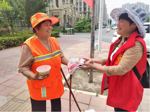 炎炎夏日,热浪来袭。中牟县刘集镇绿博家苑社区户外劳动者爱心驿站为切实关爱社区环卫工人,表达对他们无私奉献的敬意与关怀。6月19日,驿站组织开展“炎炎夏日送清凉·关爱户外劳动者”主题活动。