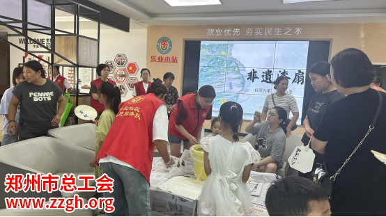 非遗漆扇,作为中国传统手工艺的瑰宝,以其独特的制作工艺和精美的图案设计而闻名遐迩。活动中,社区工作人员为居民们详细讲解了漆扇的历史渊源、制作流程以及艺术特色。在社区工作人员及工会志愿者的指导下,居民们纷纷动手尝试,从挑选扇骨、上漆到绘制图案,每一步都充满了对传统文化的敬畏与热爱。小朋友们更是兴奋不已,他们的小手在扇面上绘出了五彩斑斓的梦想与希望。