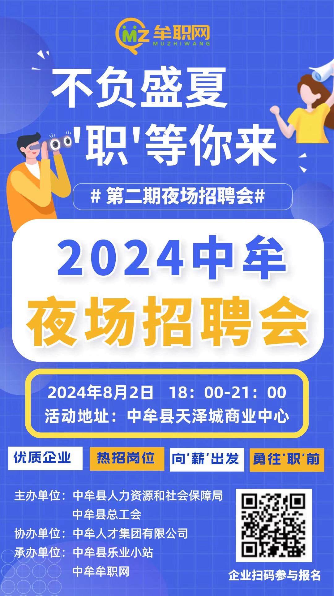 为贯彻落实中央和省、市关于“保民生、稳就业、促发展”决策部署,进一步发挥工会助企稳岗作用,促进高校毕业生、城镇失业人员、农民工等各类求职群体充分就业。中牟县总工会联合县人社局于8月2日(周五)18:00-21:00在中牟天泽城商业中心举办“不负盛夏 ‘职’等你来”夜场招聘会!旨在搭建更为灵活、接地气的岗位供需交流平台,欢迎广大企业和求职人员积极参与!
