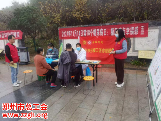 2024年11月14日是第18个世界糖尿病日,为提高职工群众对糖尿病的重视,引导广大群众养成文明健康生活方式,普及糖尿病防治相关知识,提高预防疾病能力,在世界糖尿病日到来之际,中牟县总工会充分发挥职能优势,联合县卫生防疫站开展劳模义诊志愿服务活动。