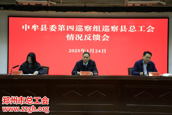 1月24日下午,中牟县委第四巡察组召开了巡察县总工会情况反馈会议。会议由县总工会常务副主席王德虎主持。县委第四巡察组组长李钦、副组长张胜楠出席会议,县总工会全体干部职工参加了会议。