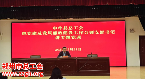 3月21日上午,中牟县总工会召开2025年抓党建暨党风廉政建设工作会议,党支部书记王德虎讲授《常怀“四心”做忠诚干净担当的表率》党风廉政建设专题党课,全体党员干部职工参加会议。