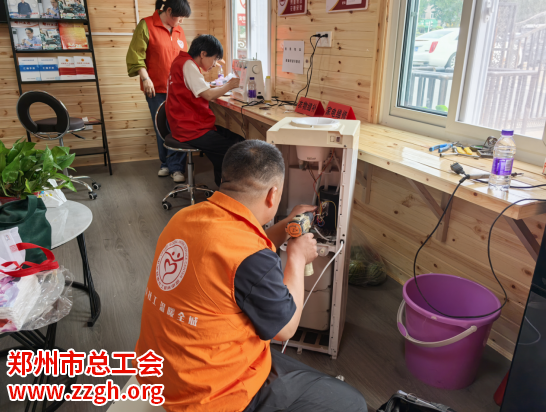 6月10日上午,中牟新区总工会优秀农民工志愿服务队在新世纪广场工会驿站开展“榜样引领 志愿先行”志愿便民服务活动。此次活动志愿者由中牟县益奉社工服务中心历届优秀农民工组成,他们身穿红马甲,头顶烈日,开展免费义剪、健康体检、衣物缝补、家电维修等多项实用服务项目,旨在切实为中牟新区广大职工群众的生活带来便利。
