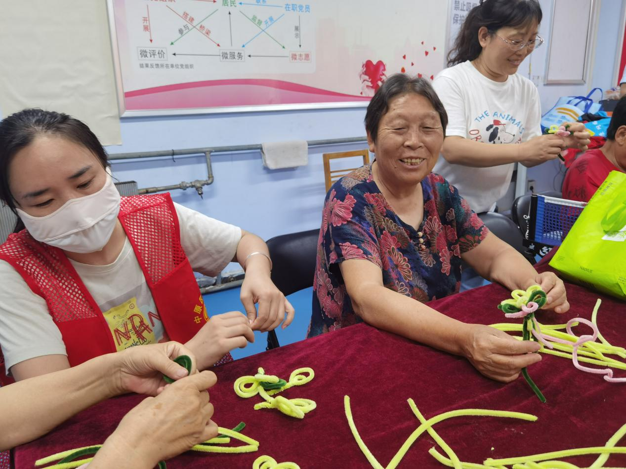 大家聚坐在一起,体会手工制作的魅力,让充满创意的扭扭棒作品在指尖绽放。活动中,社区工作人员将五颜六色的扭扭棒分发给大家,“手工制作达人”耐心讲解制作方法,并现场演示。大家跃跃欲试,纷纷拿起扭扭棒开始创作,扭扭棒在大家的手中缠绕、塑形,不一会儿就变成了一个个栩栩如生的“小柿子”和形态各异的花朵,随后大家又制作枝条、搭配叶子、调整形态。每个环节都充满了创意与巧思,大家互相交流着制作技巧,分享着自己的创意,现场气氛温馨而热烈,在制作过程中,大家不仅锻炼了自己的动手能力,还增进了彼此之间的交流和友谊。