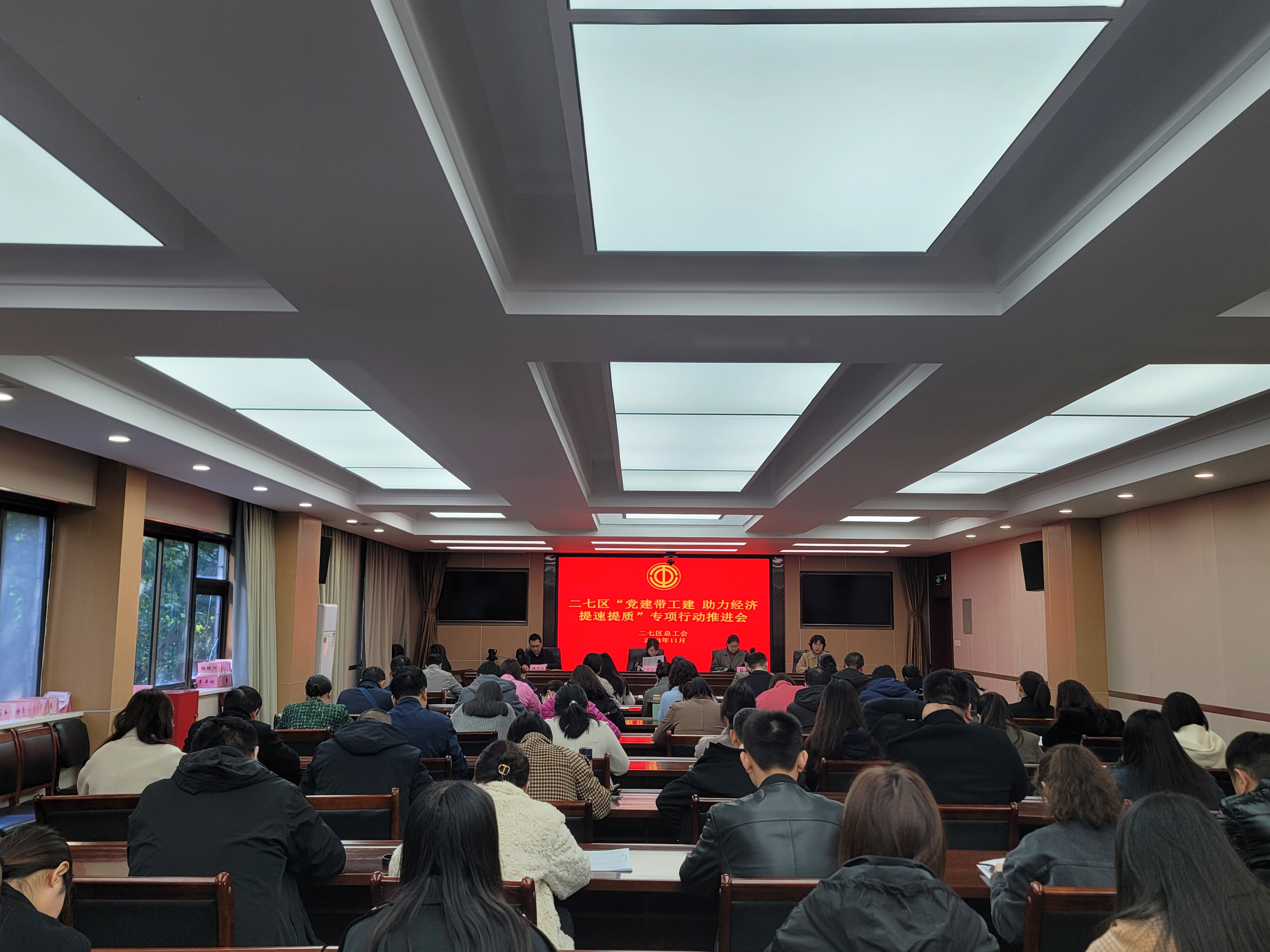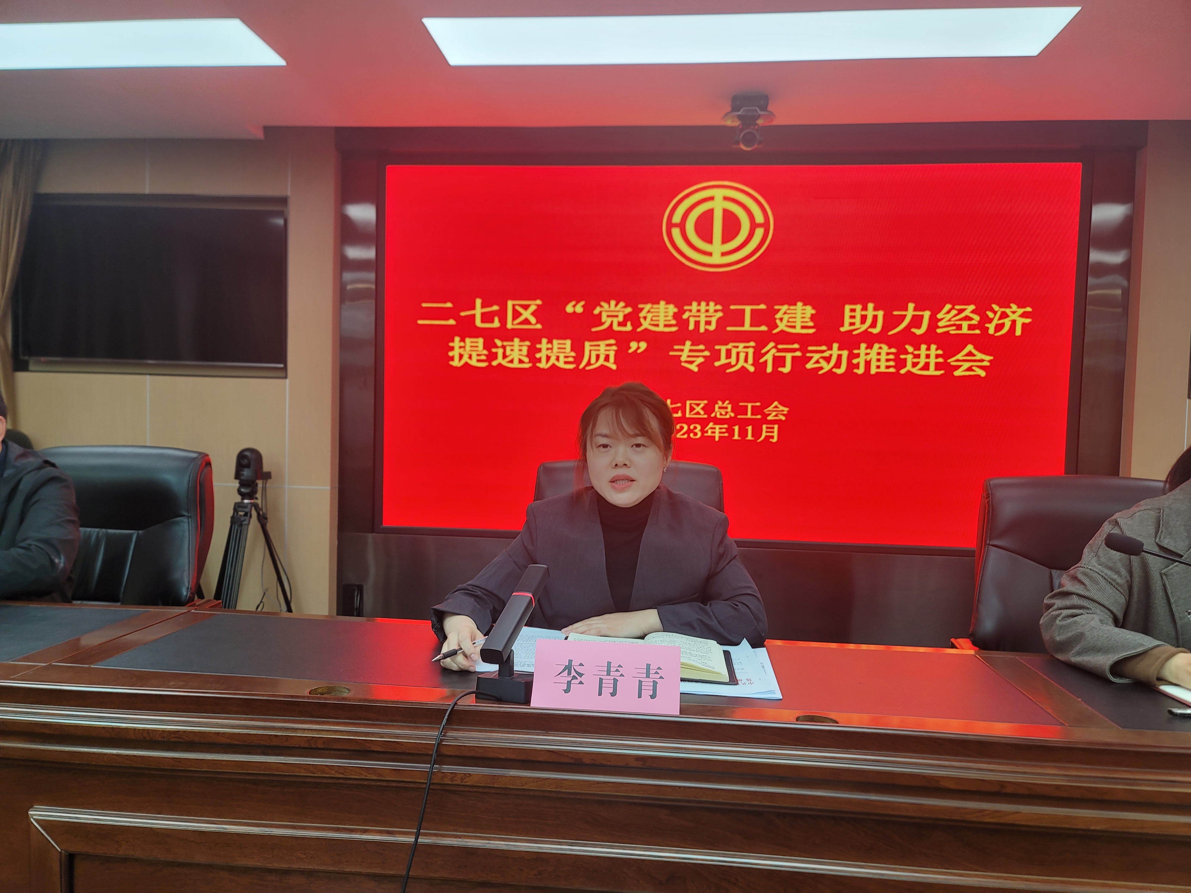 11月8日,二七区委组织部与二七区总工会联合召开“党建带工建 助力经济提速提质”专项行动推进会。区总工会党组书记、常务副主席李青青;区委组织部副部长杨熠及区总工会领导班子出席会议。全区各镇、街道组织委员及工会主席,“专精特新”企业和重点项目负责人或工会主席参加会议。