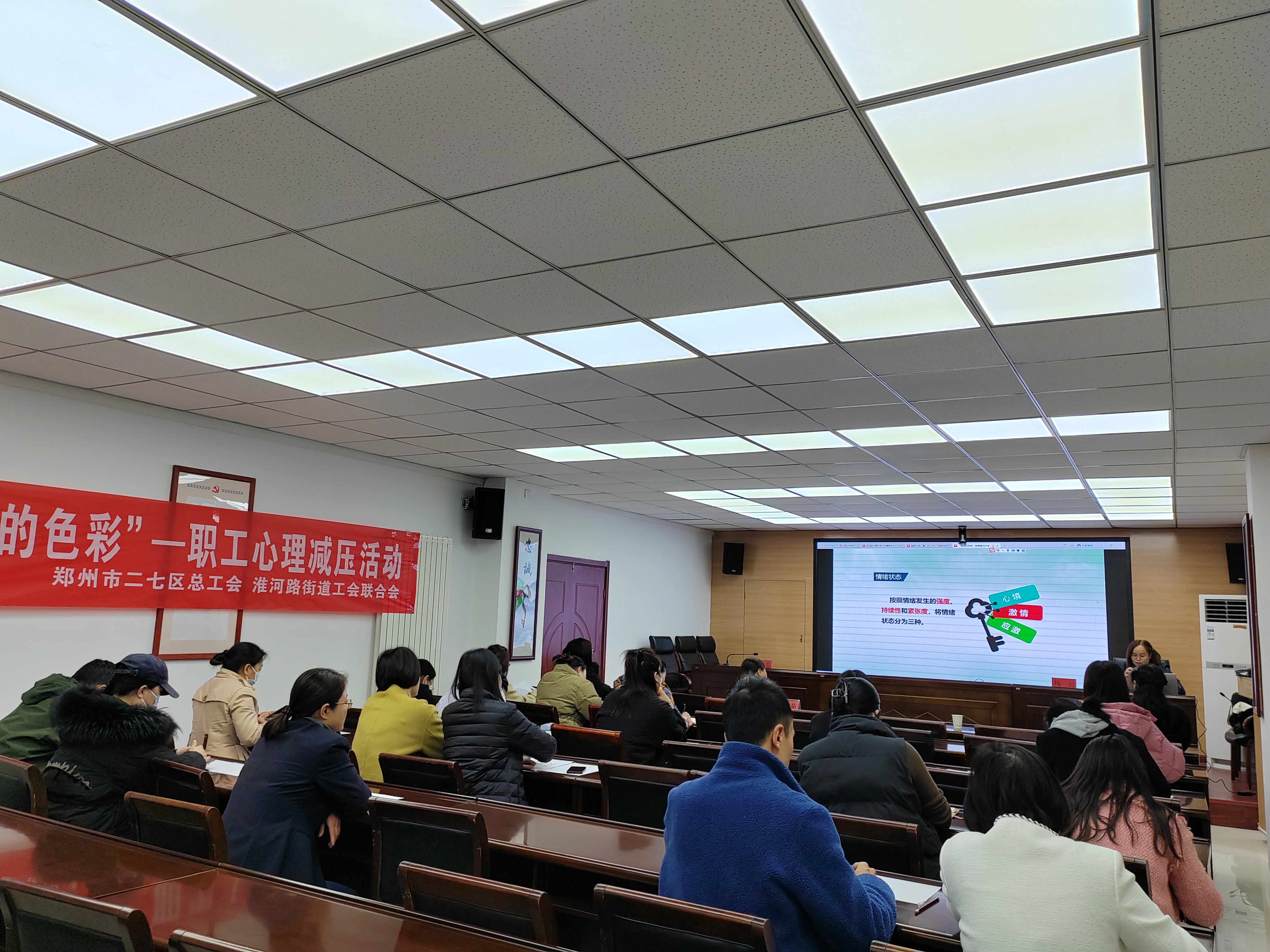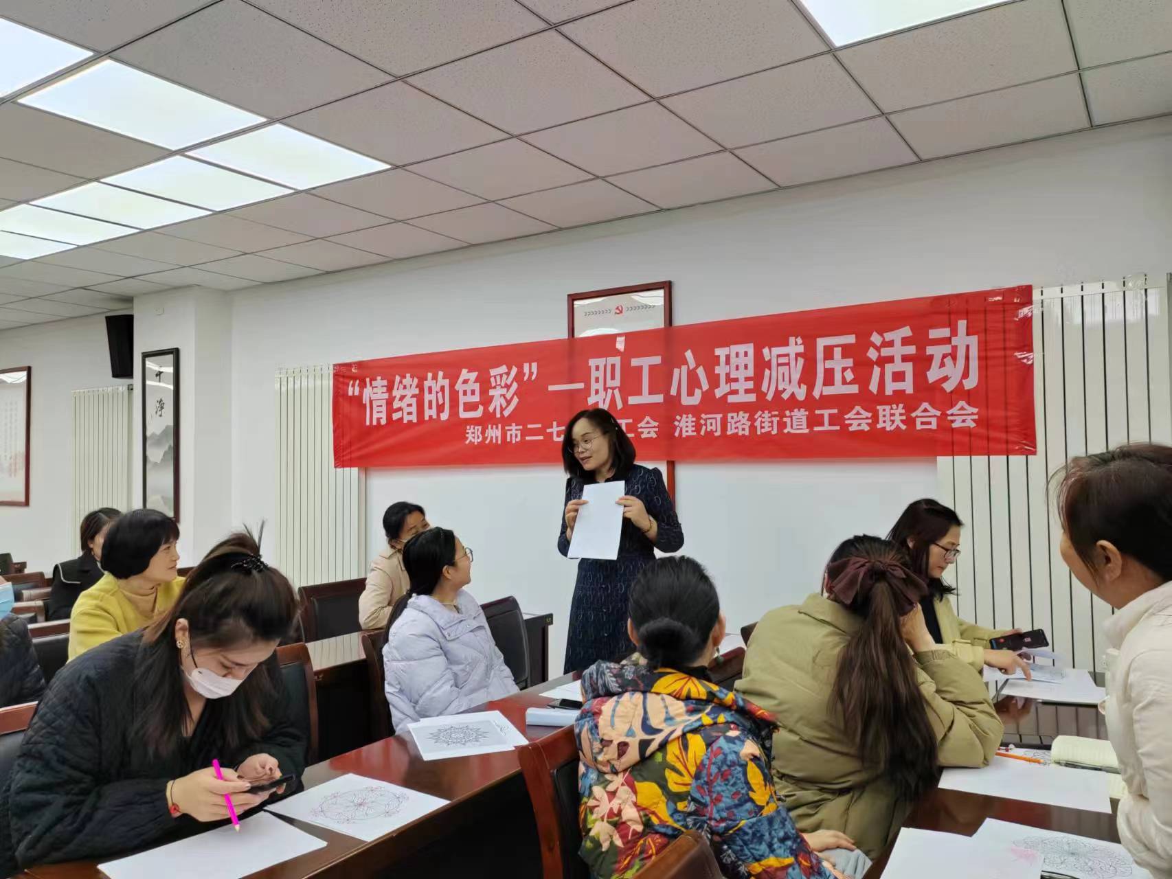为进一步加强职工心理健康教育工作,在全社会营造关注自我、重视心理健康的良好氛围,帮助职工疏导心情、舒缓压力,11月24日下午,二七区总工会联合淮河路街道工会联合会开展“情绪的色彩”——职工心理减压活动,助力职工身心健康成长。二七区总工会党组书记、常务副主席霍晓丽出席活动。