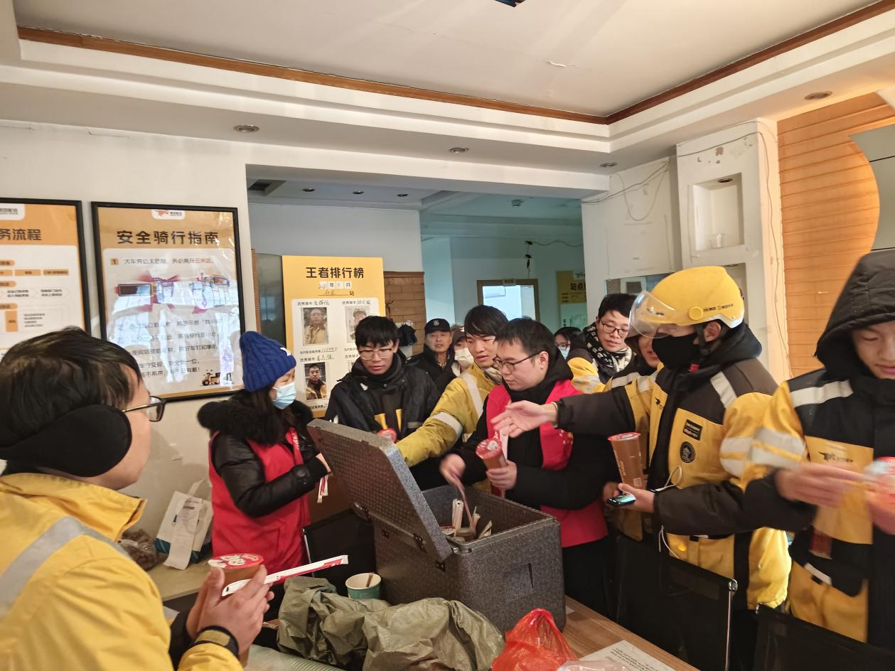 活动现场,工会工作人员将一杯杯热腾腾的奶茶递到外卖骑手们的手中,外卖骑手们在品尝到热奶茶的同时,也感受到了工会组织的关爱和温暖。