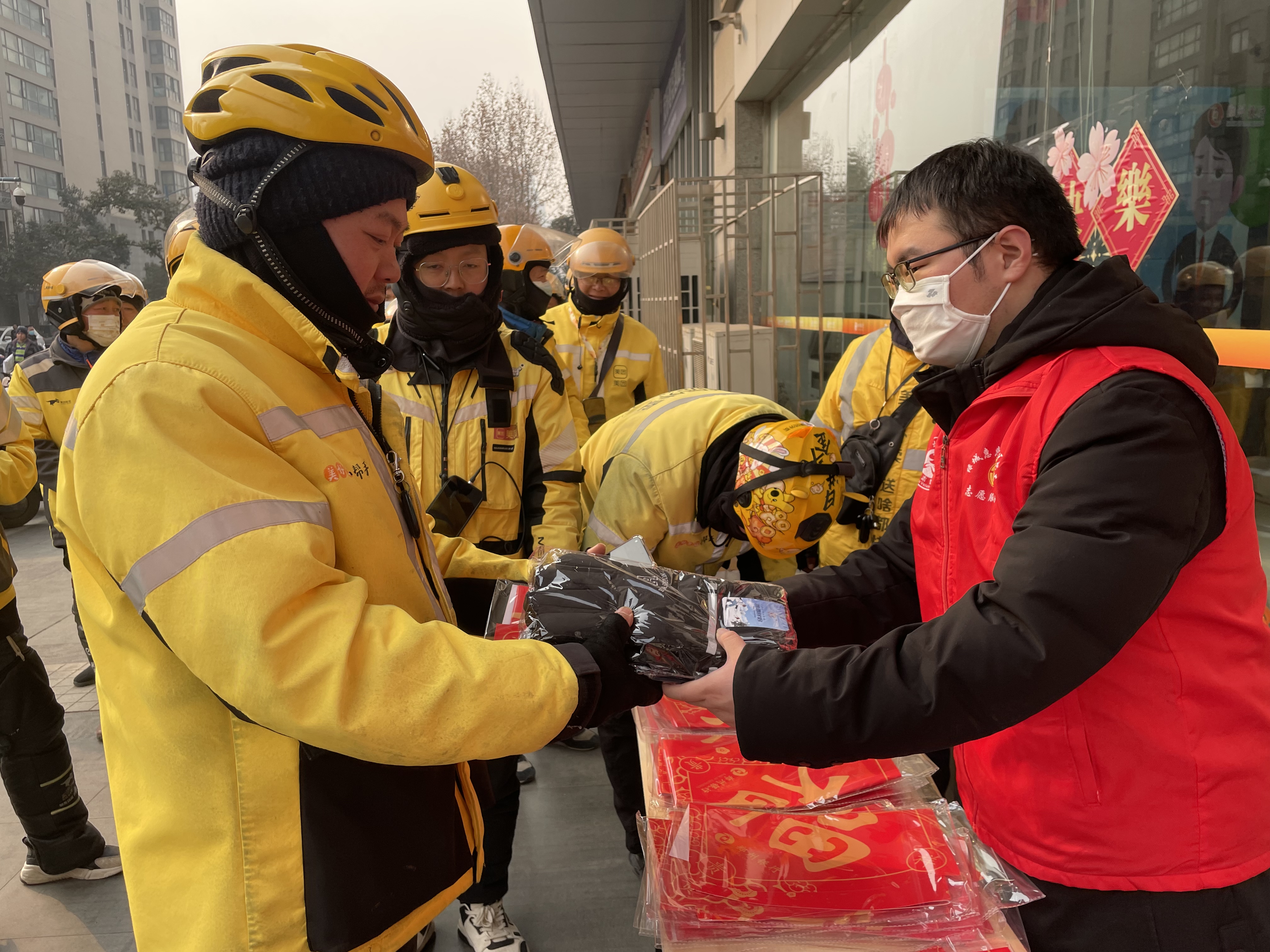 活动现场,区总工会为每一位参与活动的新业态劳动者送上了厚厚的棉手套和祝福满满的春联,为即将到来的新春佳节增添了浓浓年味,也为大家送去了慰问和新春的祝福。