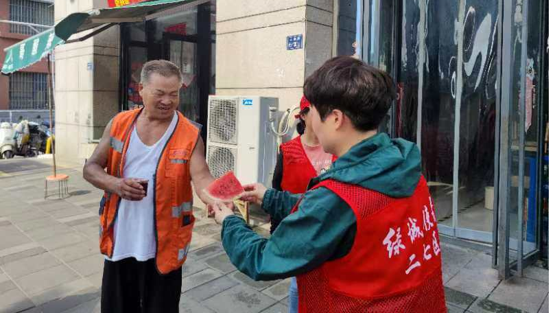 此时正值“三伏”,烈日炎炎,对于坚守在户外的劳动者而言这无疑是严峻的“烤”验。面对户外工作者的不易,郑州市二七区长江路街道工会联合万达社区以实际行动积极响应,组织开展“夏季送清凉”志愿服务,为工作在高温一线的外卖小哥、保安、环卫工人等送去丝丝清凉,撑起夏日关爱“遮阳伞”。