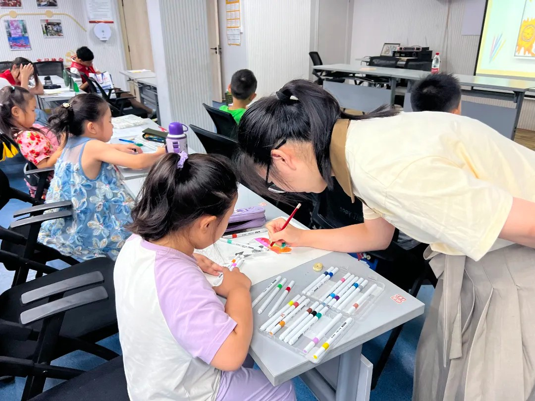 工会作为职工群众的“娘家人”,积极发挥桥梁纽带作用,通过“工会+社会”的联动机制,招募了8名大学生志愿者及社区内的“五老人员”、三级网格长等,共同参与到托班的日常管理与教学中。他们不仅负责孩子们的学业辅导和秩序维护,还开设了硬笔书法、创意美术、作文辅导等特色课程,让孩子们的暑假生活更加丰富多彩。