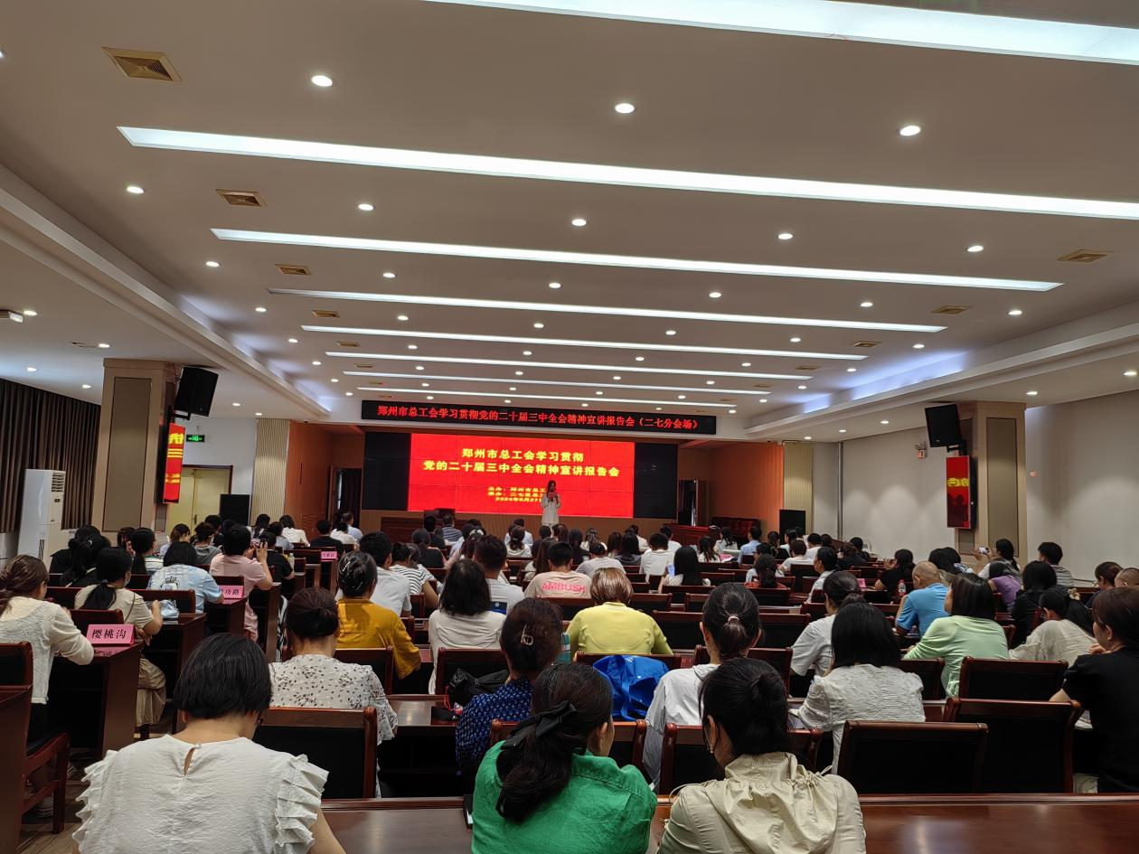 为深入学习贯彻党的二十届三中全会精神,引导全区各基层工会和广大职工把思想和行动统一到全会精神上来。8月27日,由郑州市总工会主办,二七区总工会承办的学习贯彻党的二十届三中全会精神宣讲报告会在区税局会议室圆满举行,来自全区各基层工会的150名职工参加活动。