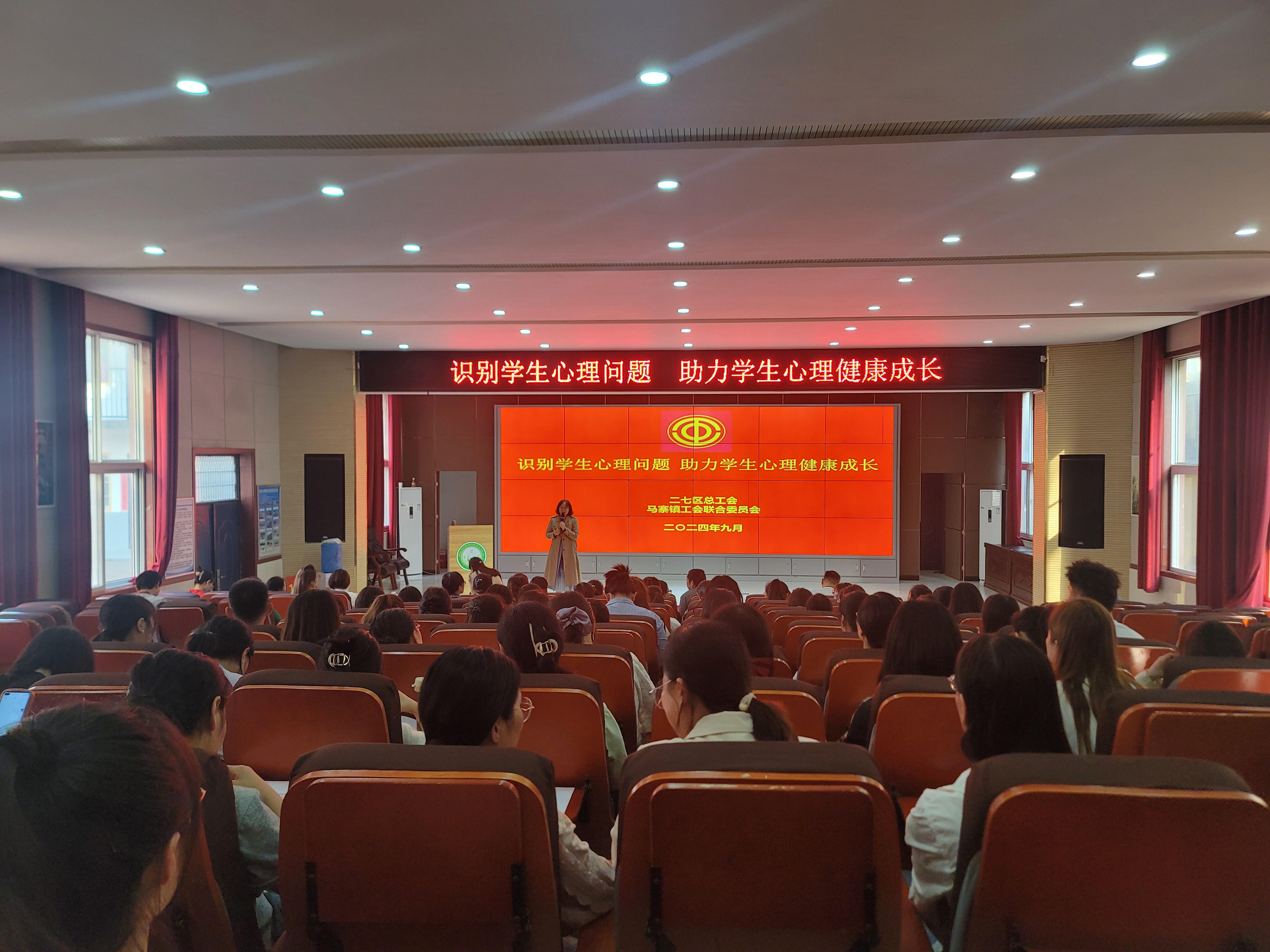 为帮助教职工有效掌握学生心理问题干预知识和技能,9月25日,二七区马寨镇工会面向陇西小学先锋校区和培育小学百余名教职工开展以“识别学生心理问题 助力学生心理健康成长”为题的心理专题讲座。本次讲座邀请到国家二级心理咨询师、高级青少年心理咨询师、家庭教育指导师杨兵现场授课,旨在应对当前学生心理问题日益增多的挑战、提供有效的解决策略和方法。