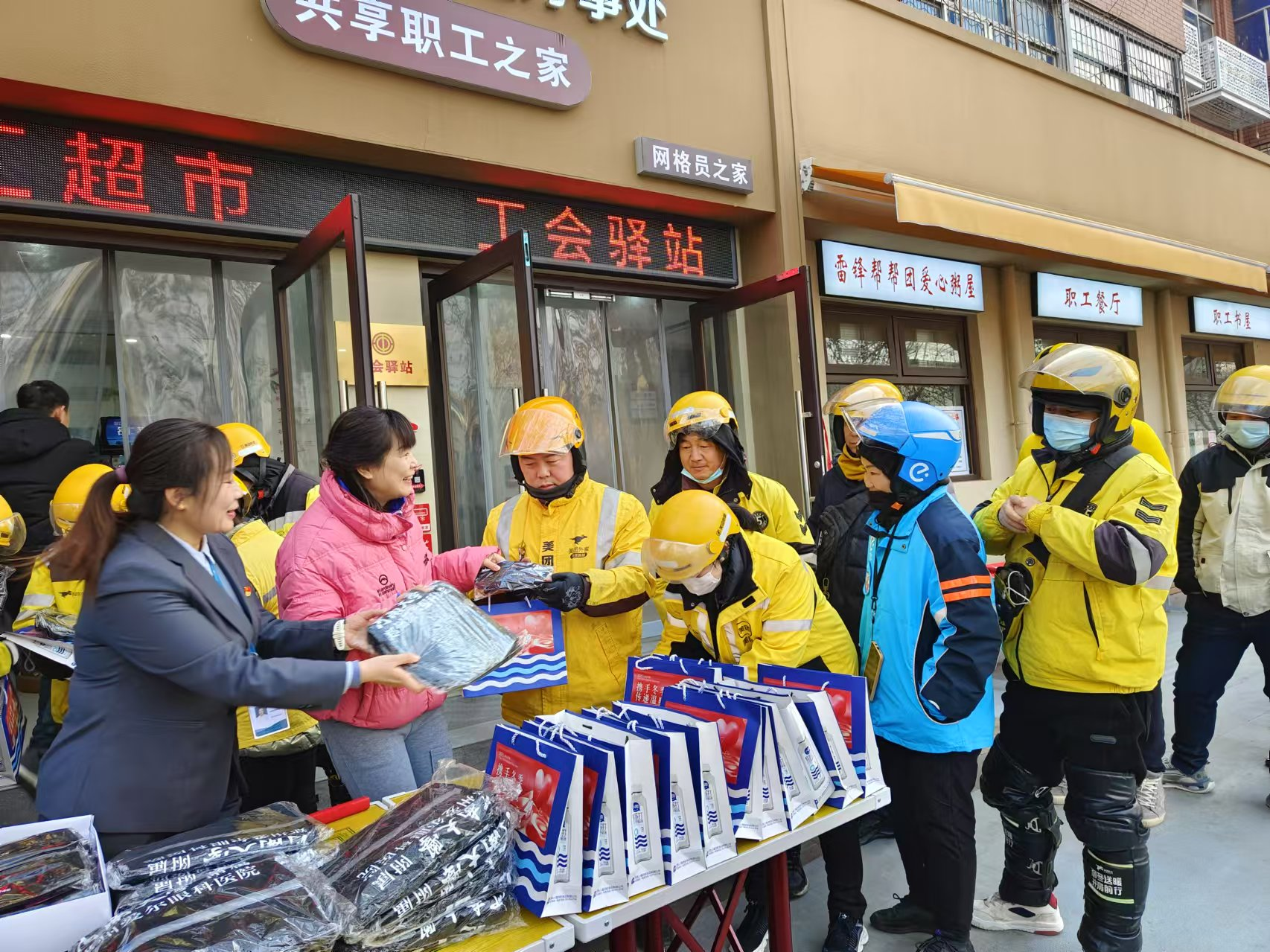 汇聚善心暖人心。此次活动现场还涌现了众多爱心善举。辖区爱心企业特别为新业态劳动者准备了包含棉帽、棉手套、雨衣等实用物品的“爱心温暖包”,用实际行动传递着温暖与关怀,让这群城市的“奔跑者”在寒冬中感受到了浓浓的暖意。同时,活动还设置了便民服务区,提供免费理发、金融防诈宣传等服务,助力职工及新业态劳动者以全新面貌迎接节日,提升防范意识与自我保护能力。