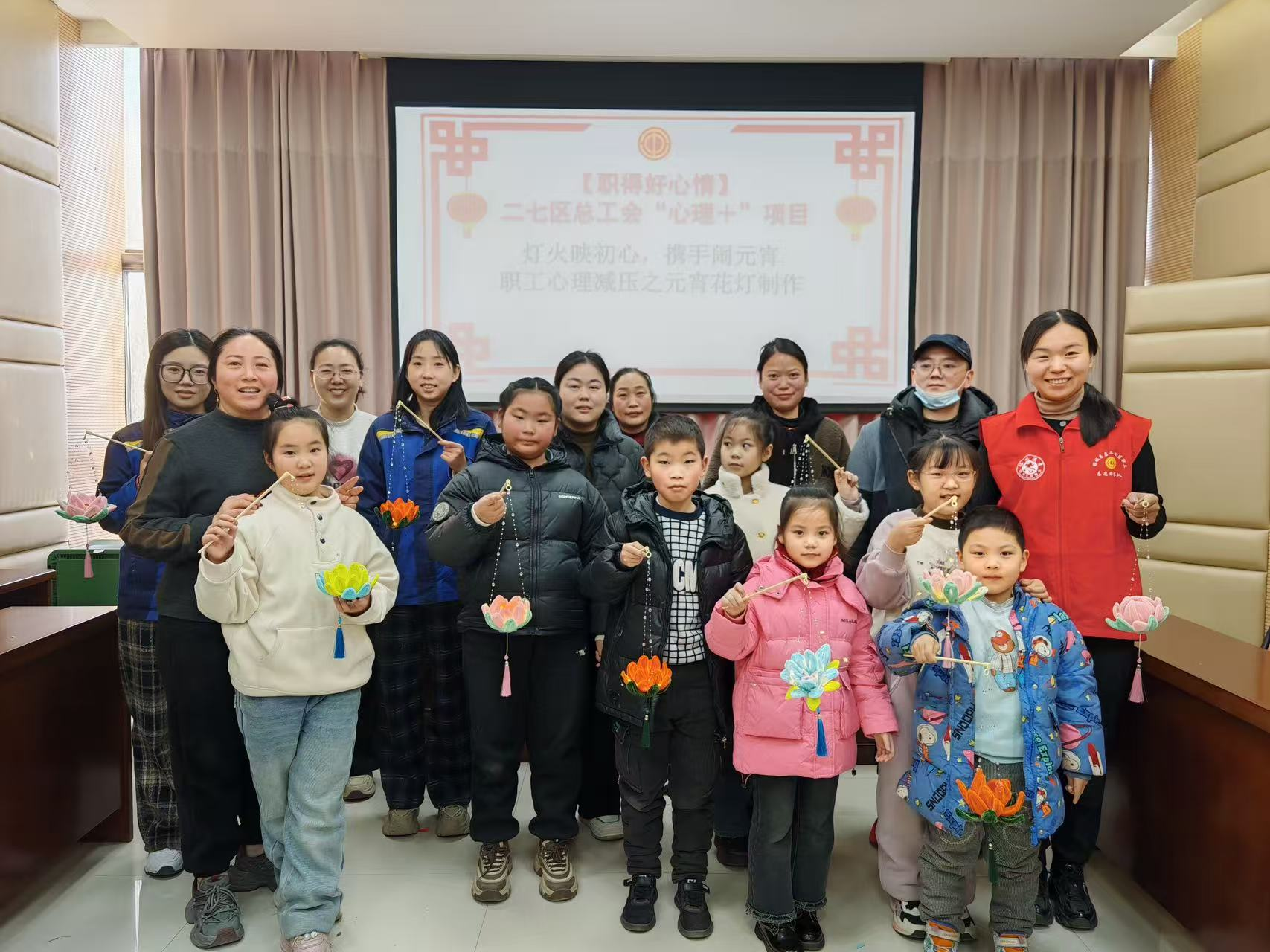 当非遗技艺邂逅心理疗愈,传统佳节焕发时代新韵。2月9日,在七心赋能体验馆内,十余组职工家庭齐聚一堂,共同参与由二七区总工会精心策划的“灯火映初心·携手闹元宵”职工心理减压花灯制作活动。这场以非遗花灯制作为载体的特色体验,巧妙融合传统文化与现代心理关怀,为职工搭建起沉浸式的减压空间。