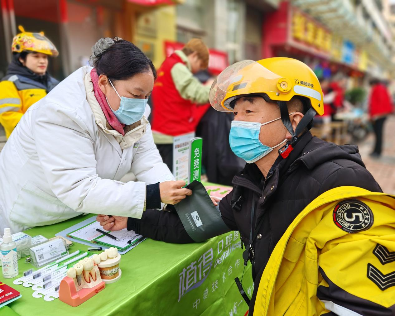 在活动现场,职工群众、社区居民、外卖员、快递员在职工志愿者的引导下有序排队,医务人员耐心细致地为大家测量血压、血糖,检查视力和口腔卫生,并科普一些健康知识,让大家及时了解自己的身体状况,做到疾病早发现、早预防、早治疗。