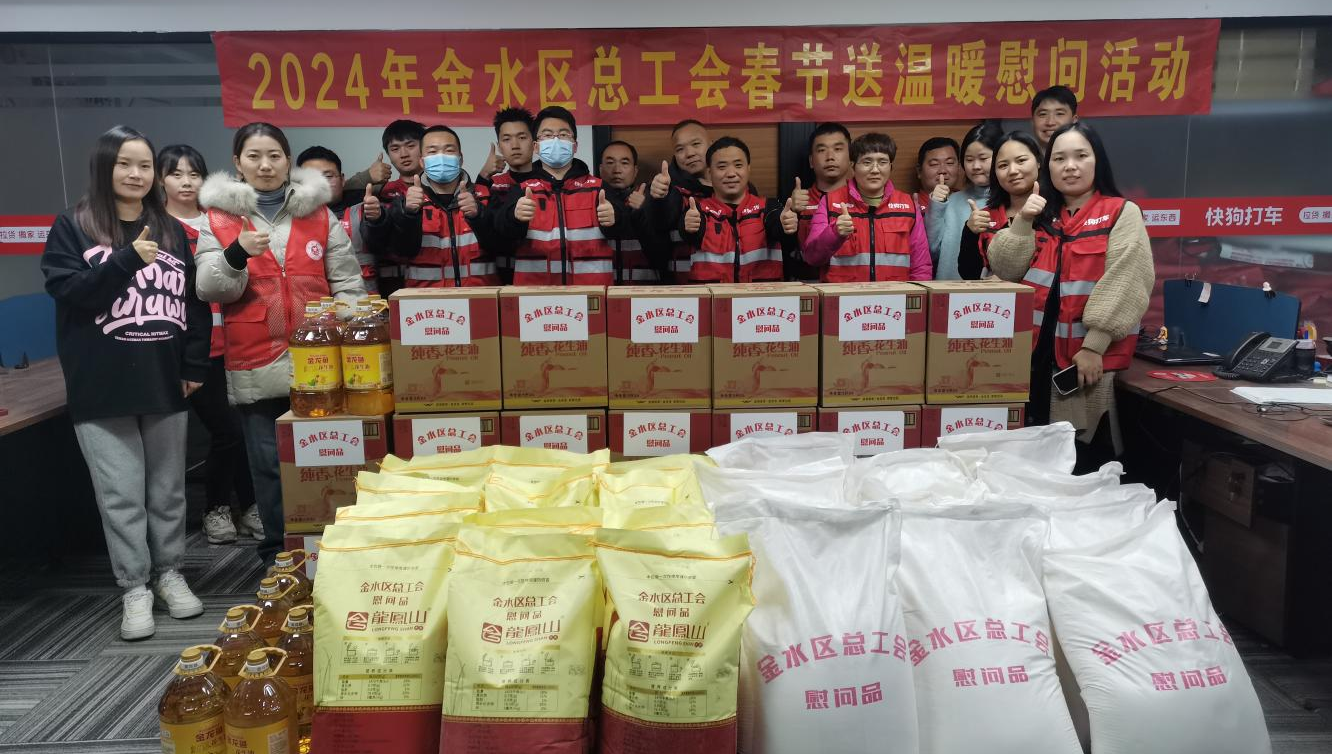 2024年春节来临之际,为把党委、政府的关心关怀与工会组织的温暖及时送到广大职工群众的心坎上,推动劳动保护工作落实到一线户外劳动群体,近期,郑州市金水区总工会深入一线开展丰富多彩的“春节送温暖”活动,为一线职工送去慰问物资及新春祝福。