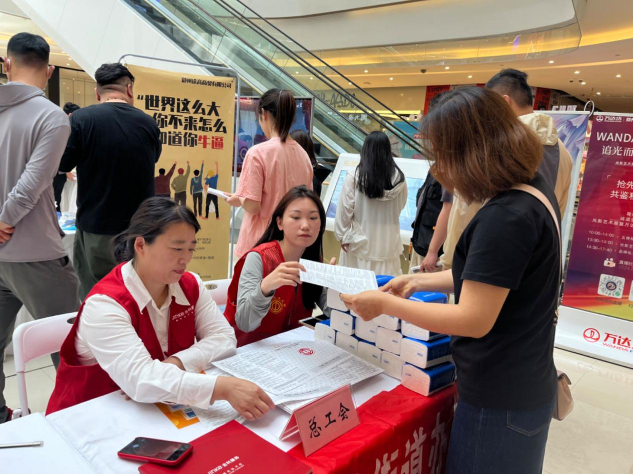 金水区总工会聘请律师为求职者提供就业帮扶和解答相关就业法律政策,并在现场发放《就业援助宣传册》《互助保险》等宣传资料。